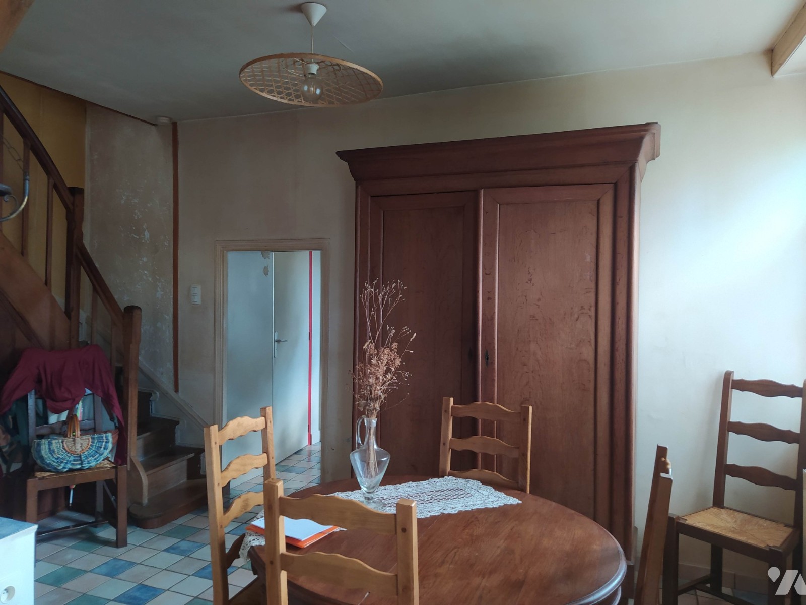 Au rez-de-chaussée : salon, séjour, cuisine, WC.